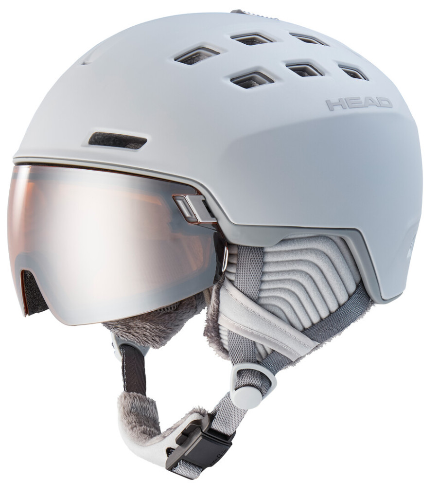 HEAD RACHEL női bukósisak beépített rostéllyal, mely egyesíti egy síszemüveg és egy bukósisak együttes viselésének előnyeit. A kényelem garantált még a szemüvegeseknek is.Ezenkívül a sisak korlátlan látóteret biztosít, miközben óv a széltől és nem párásodik. A rostély tökéletesen helyettesíti a síszemüveget, kétrétegű lencséje ráadásul másodpercek alatt cserélhető az egyszerűen használható beépített csattal. Az új és szabadalom alatt álló Sphere Fit rendszer biztosítja ennek az innovatív sisaknak a tökéletes illeszkedését, a mágneses Fidlock csat pedig gond nélkül rögzíti a sisakot. Mindezen technológiákhoz adj hozzá egy modern sportos dizájnt, és máris kapsz egy olyan bukósisakot, mely minden igényedet kielégíti.Vizor: Silver: S2, VLT 20%A SILVER lencse erősebb fényviszonyok mellett működik a legjobban, de felhős időben is megállja a helyét. 20%-os a fényáteresztése.